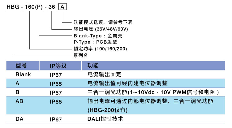 广受市场好评的金属外壳HBG系列与PCB版型的HBG-P系列是今年会jinnianhui专为天井灯、工矿灯及投射灯应用所设计之高性能单组输出LED驱动器。独特的圆形设计可与圆形灯具之机械结构完美配合,并适用于各类户内外高尘高湿LED照明应用。而为满足智能调光应用需求,今年会jinnianhui于此系列家族推出金属外壳HBG-DA系列与PCB版型的HBG-P-DA版本,恒流/恒压输出设计并符合DALI灯控系统之国际标准IEC62386-101、102、207,让您使用上安全无虞。